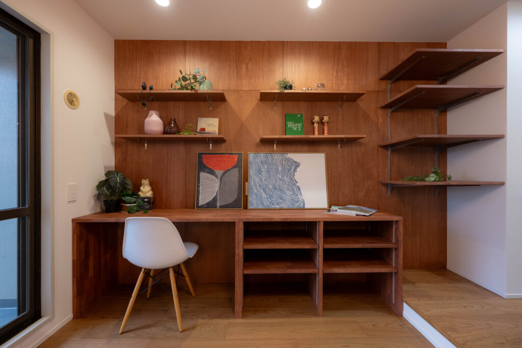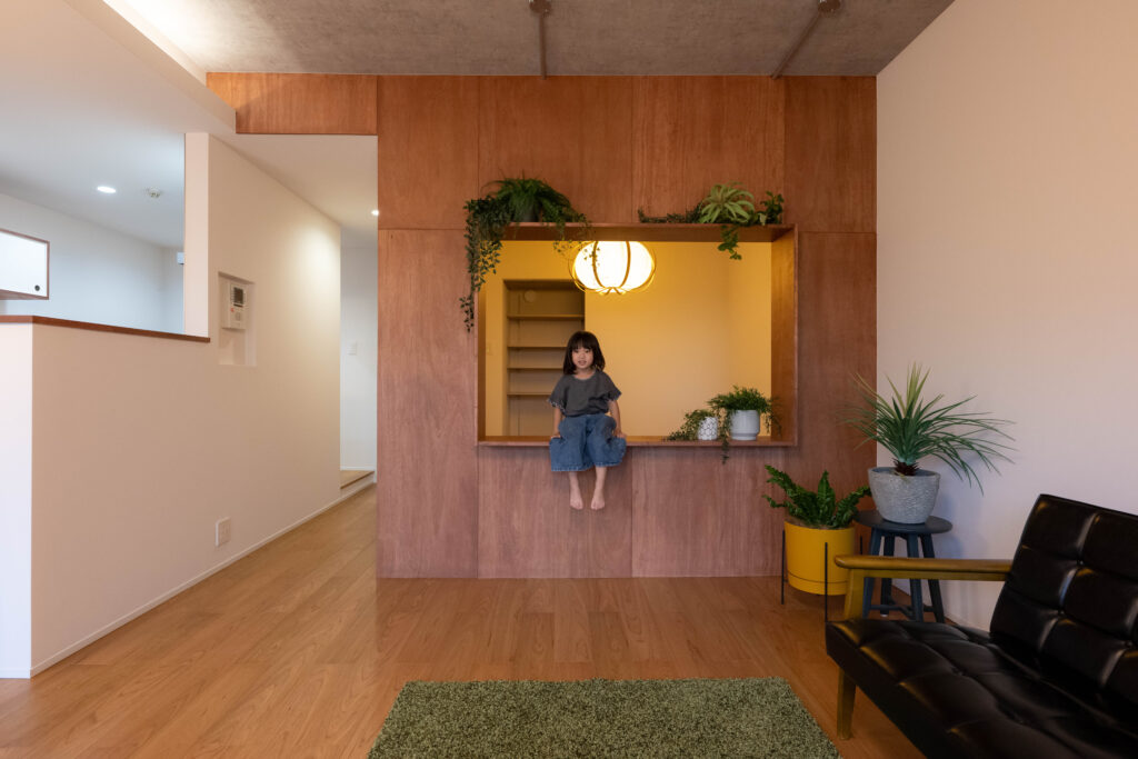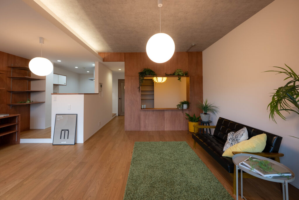 ラワン合板を貼り、落ち着いたLDKに。