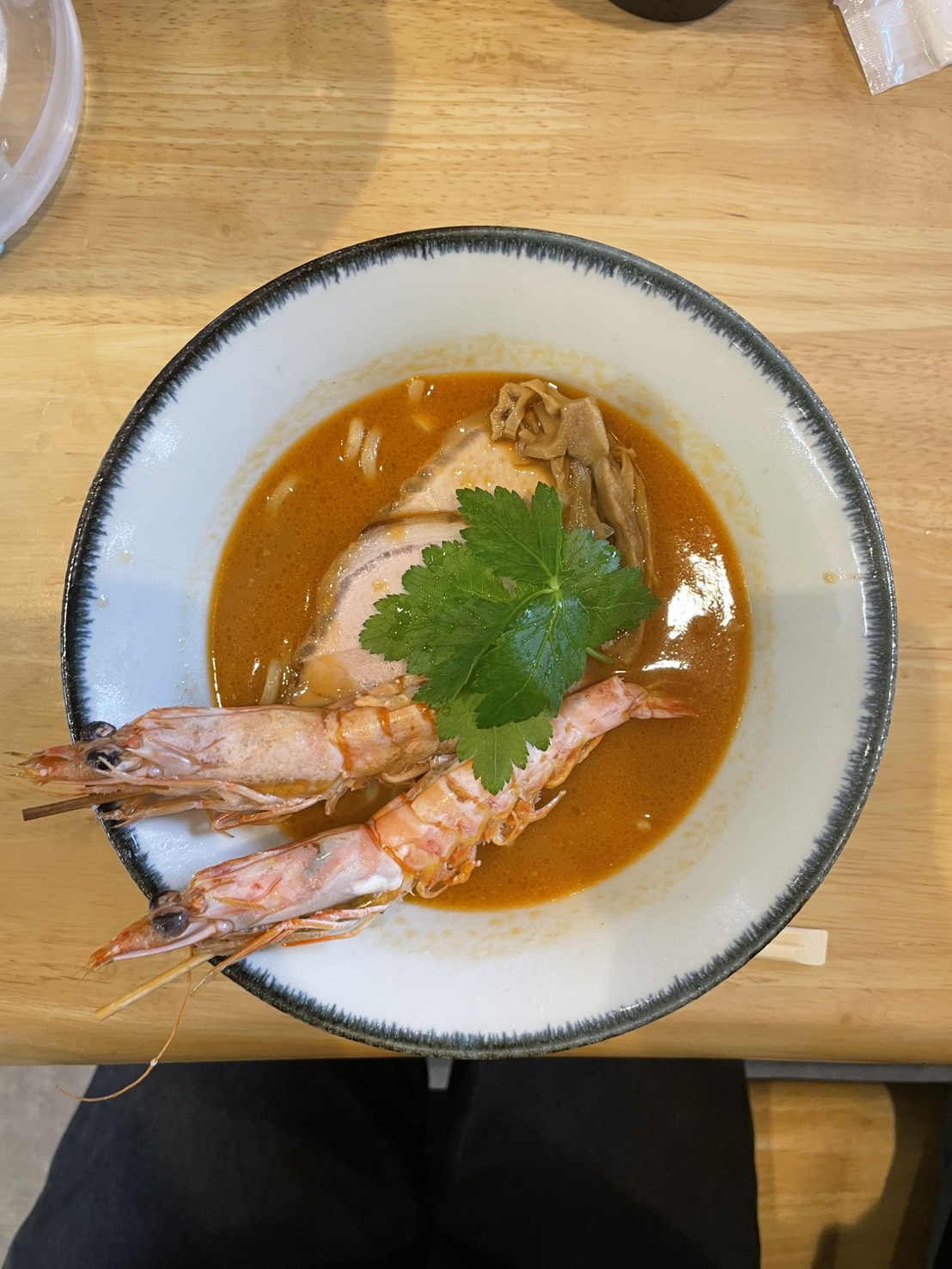 車エビの出しがめちゃくちゃ出でいて、その濃厚スープに絡めあった中太麺がそりゃまたうまい!ラーメンでした。