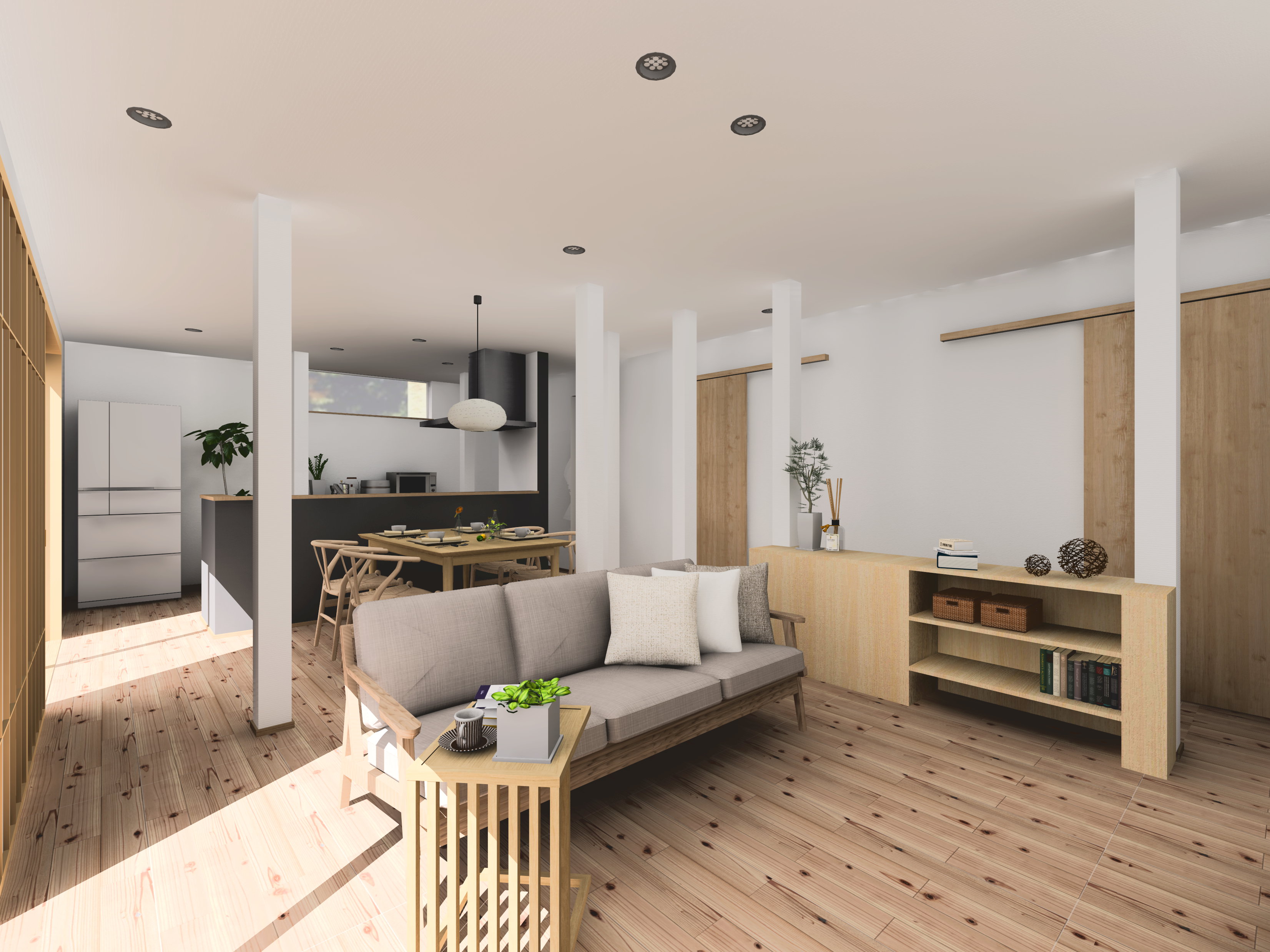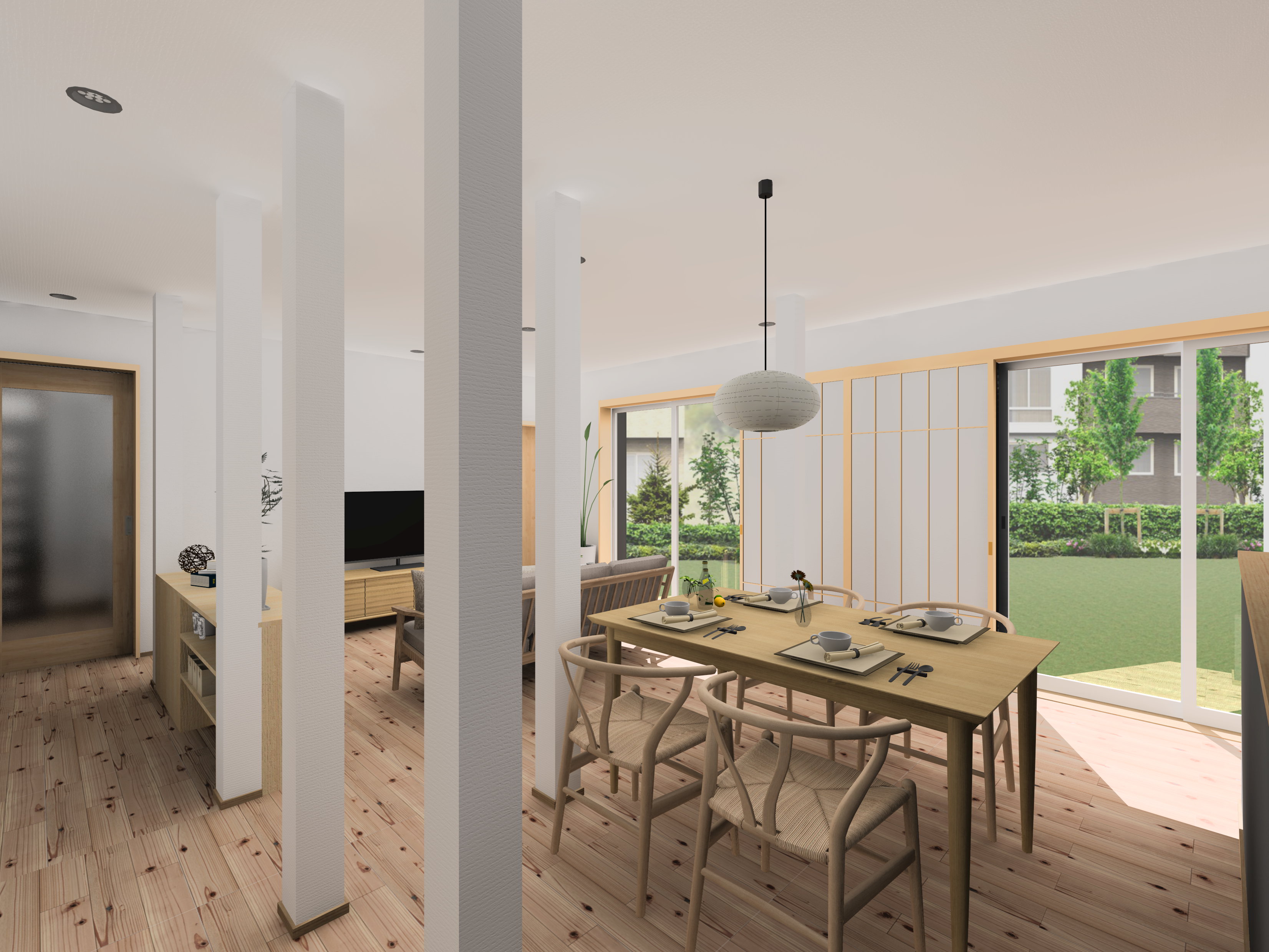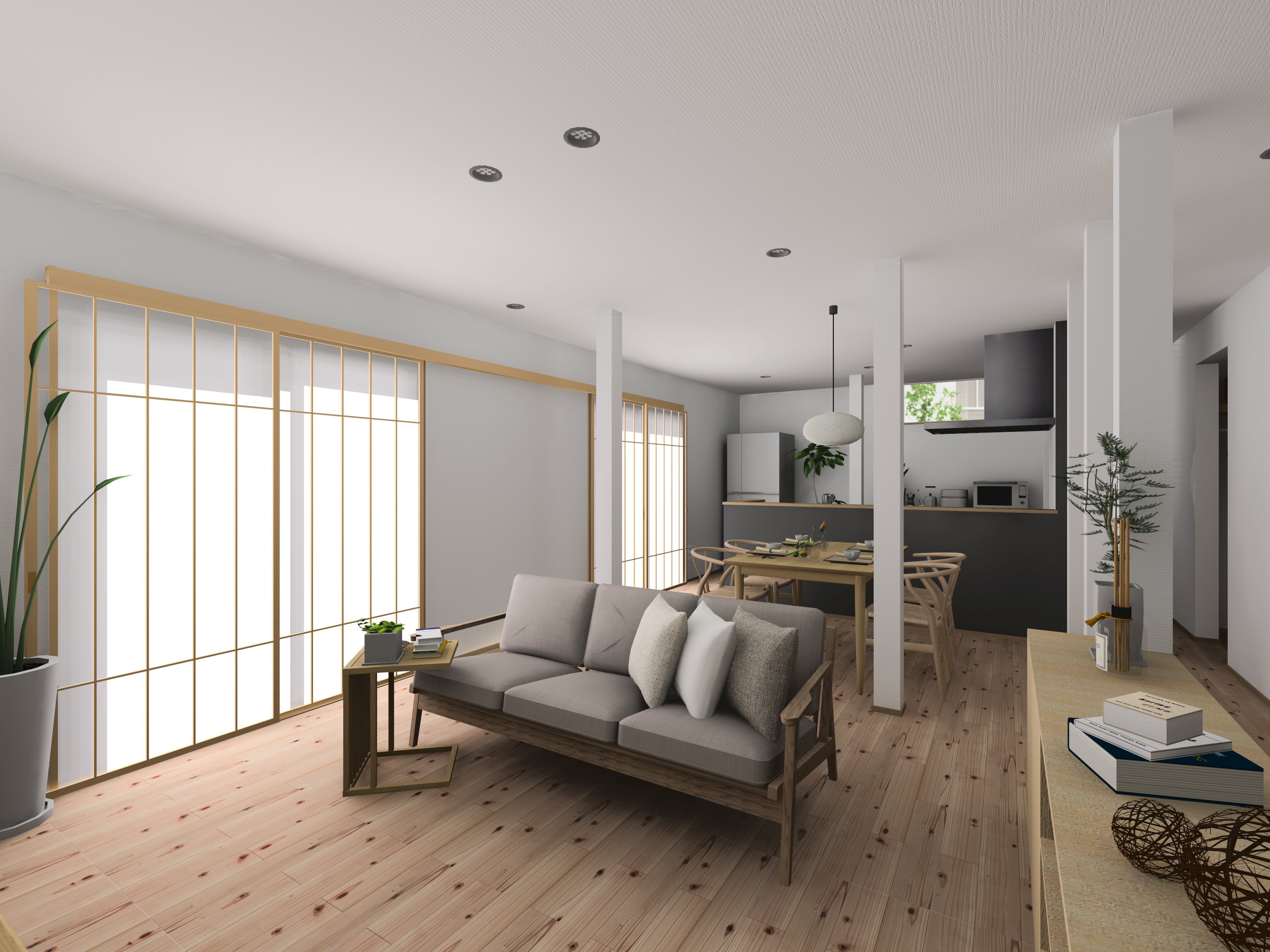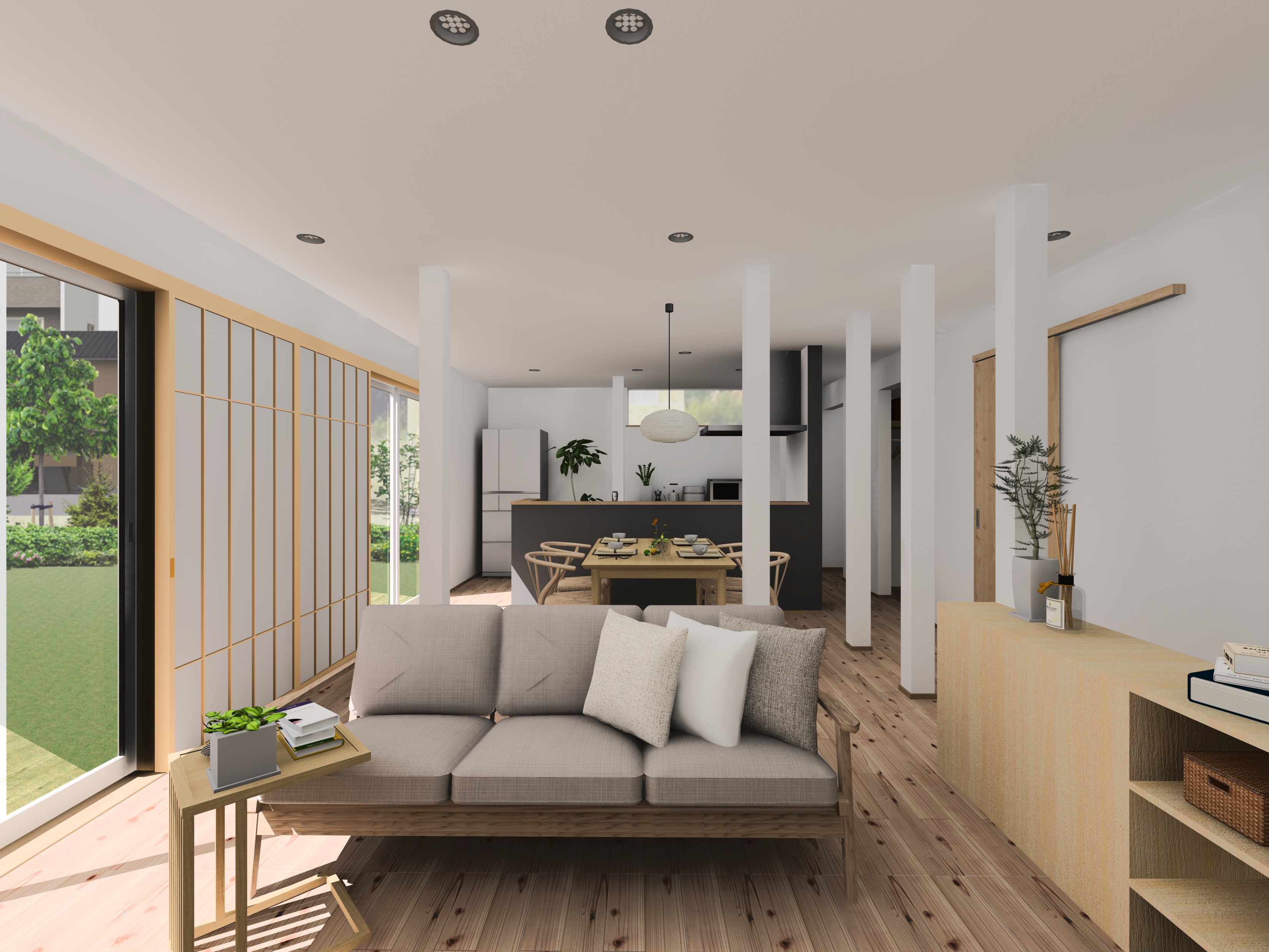障子でやわらかな光を入れながらも明るく落ち着いたLDKに。