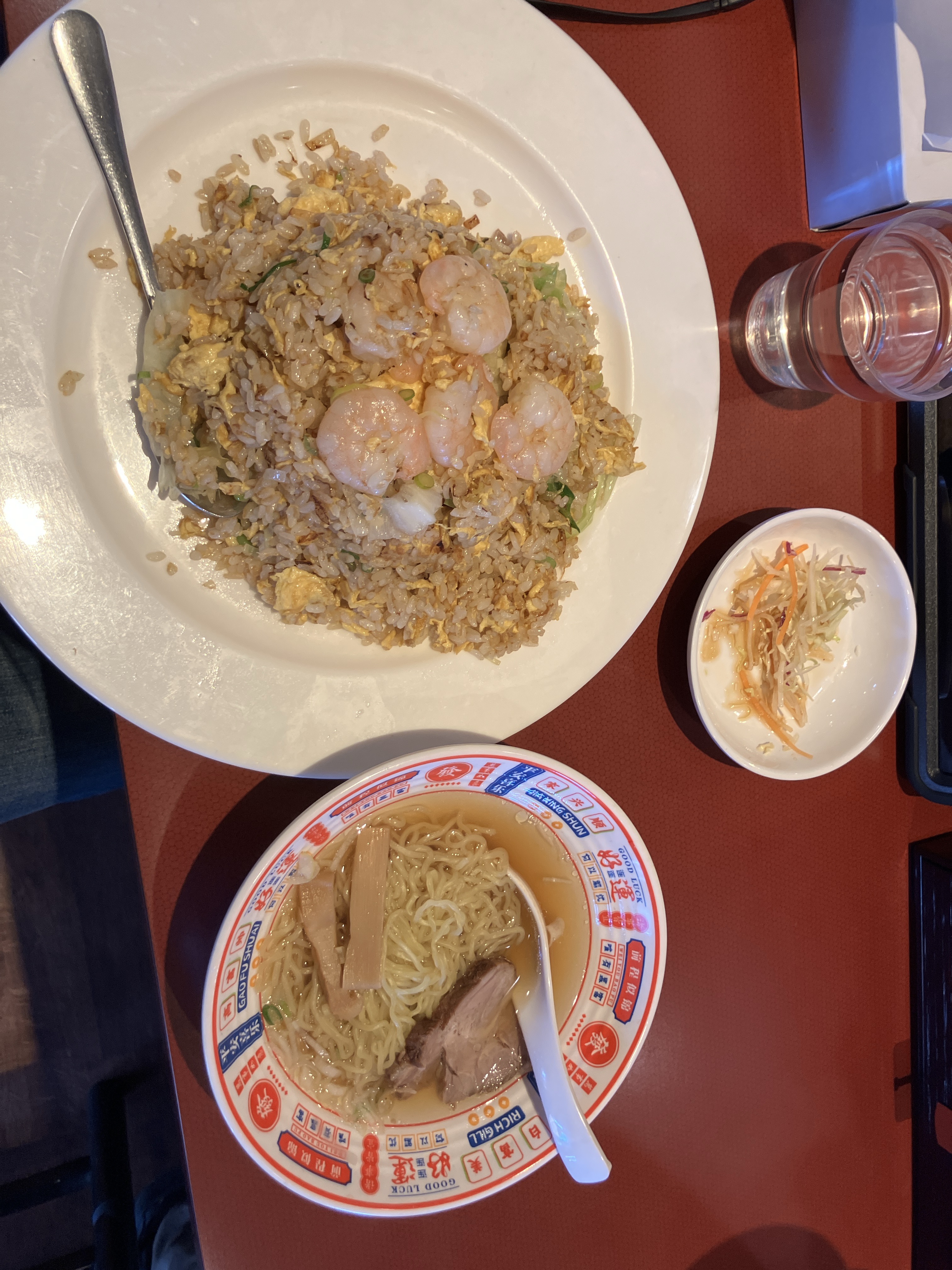 またもや中華ですがエビレタス炒飯とラーメンのセット