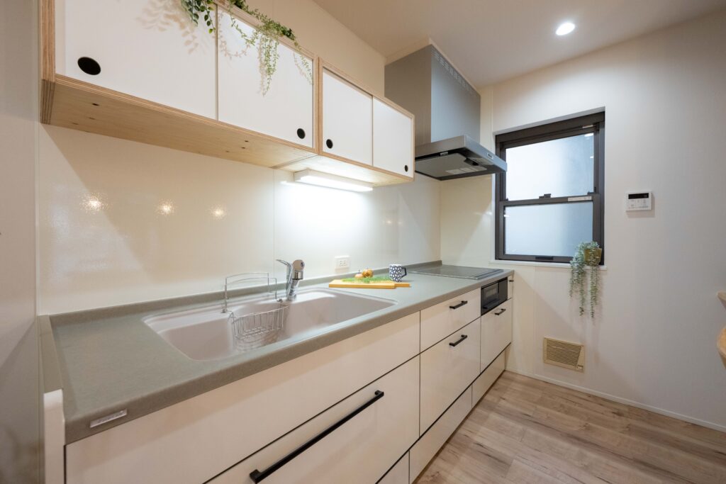 壁にはラワン合板を貼り木のぬくもりやあじわいを楽しめるデザインリノベーションハウス。
