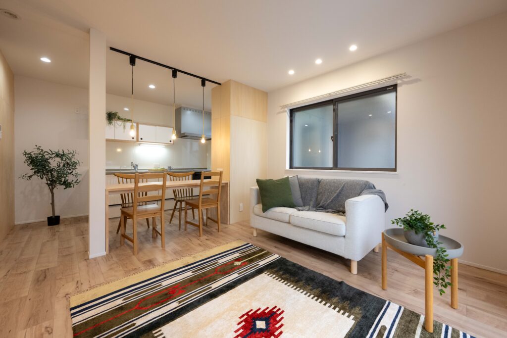 LDKは12帖とコンパクトですがダイニングテーブルと作業台を兼ねたカウンターは使い勝手抜群です。