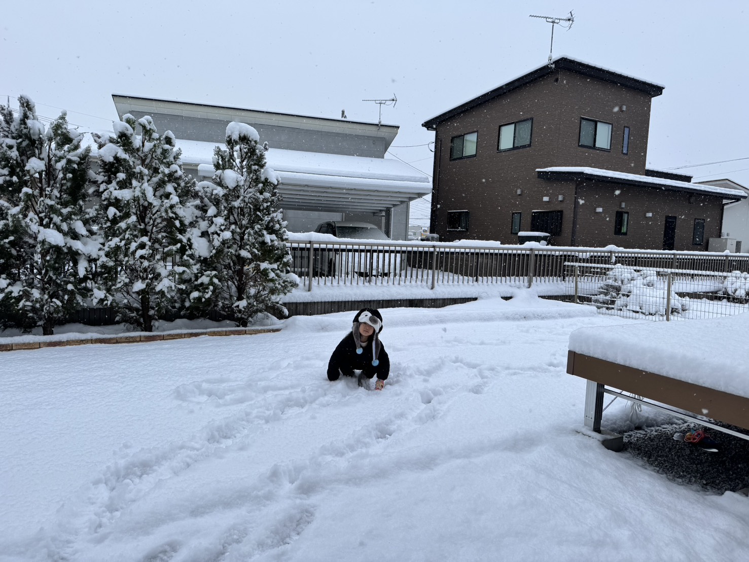 「ママー!!雪!ゆきだよーーー!」と朝早くから起こしてくれました(笑)