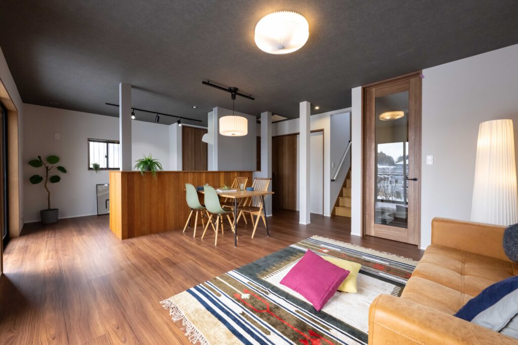 人の目線を遮るフェンスをLDK前に作り、自分達だけのプライベート空間に仕上げました。
