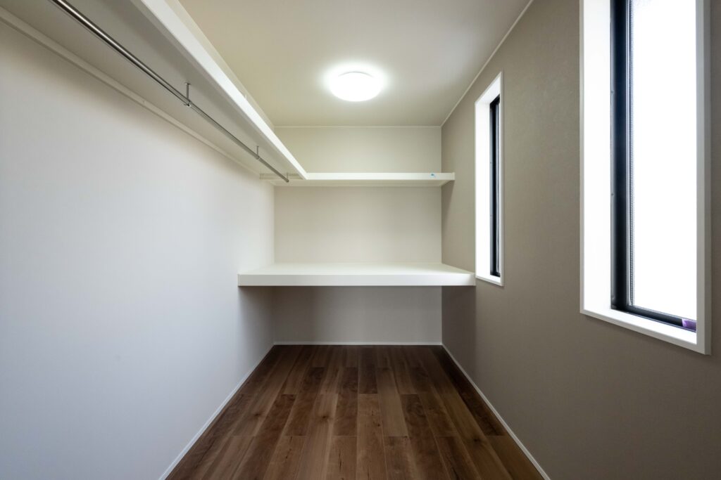 玄関横には大容量の玄関収納とコート掛けもあり、花粉の時期も上着をかけるのに便利!