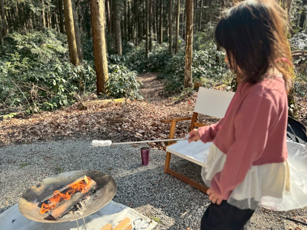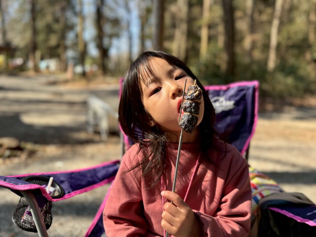 娘ちゃんもすっかりキャンプが気に入り、マシュマロ焼きを楽しんでいました💛