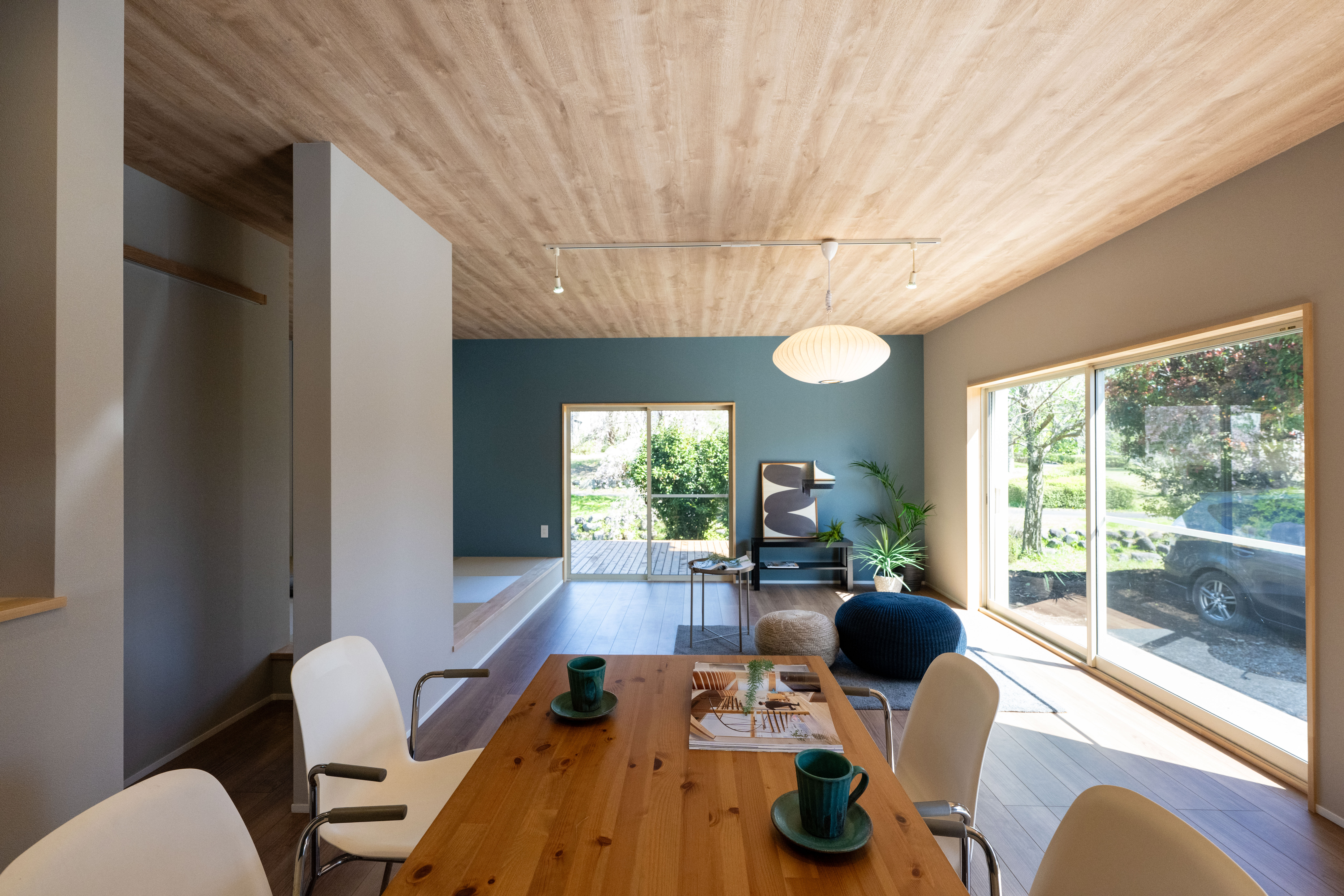 ウッドデッキから公園が見えいい感じです😊